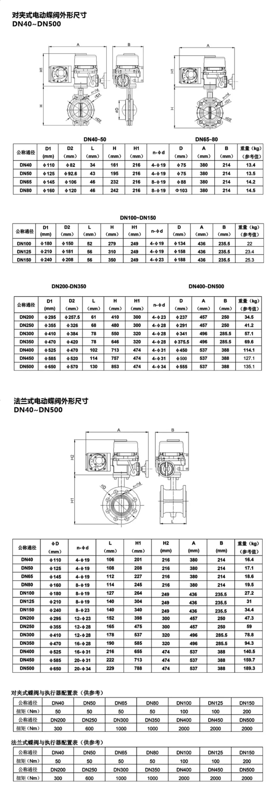 以下為海林對(duì)夾式和法蘭式電動(dòng)蝶閥的工程尺寸和相關(guān)重要參數(shù)。