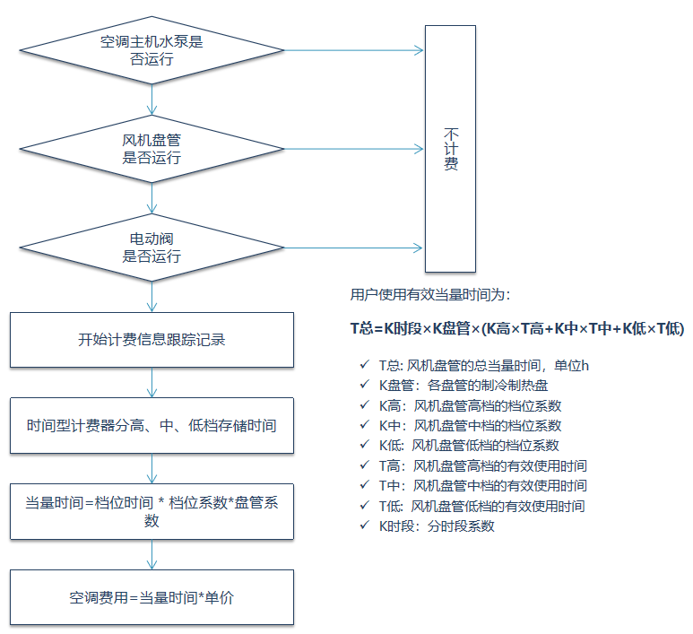 當(dāng)系統(tǒng)提供制冷或制熱的前提下,用戶電動(dòng)閥門打開,用戶的風(fēng)機(jī)盤管有效運(yùn)行,系統(tǒng)開始監(jiān)控計(jì)費(fèi)。